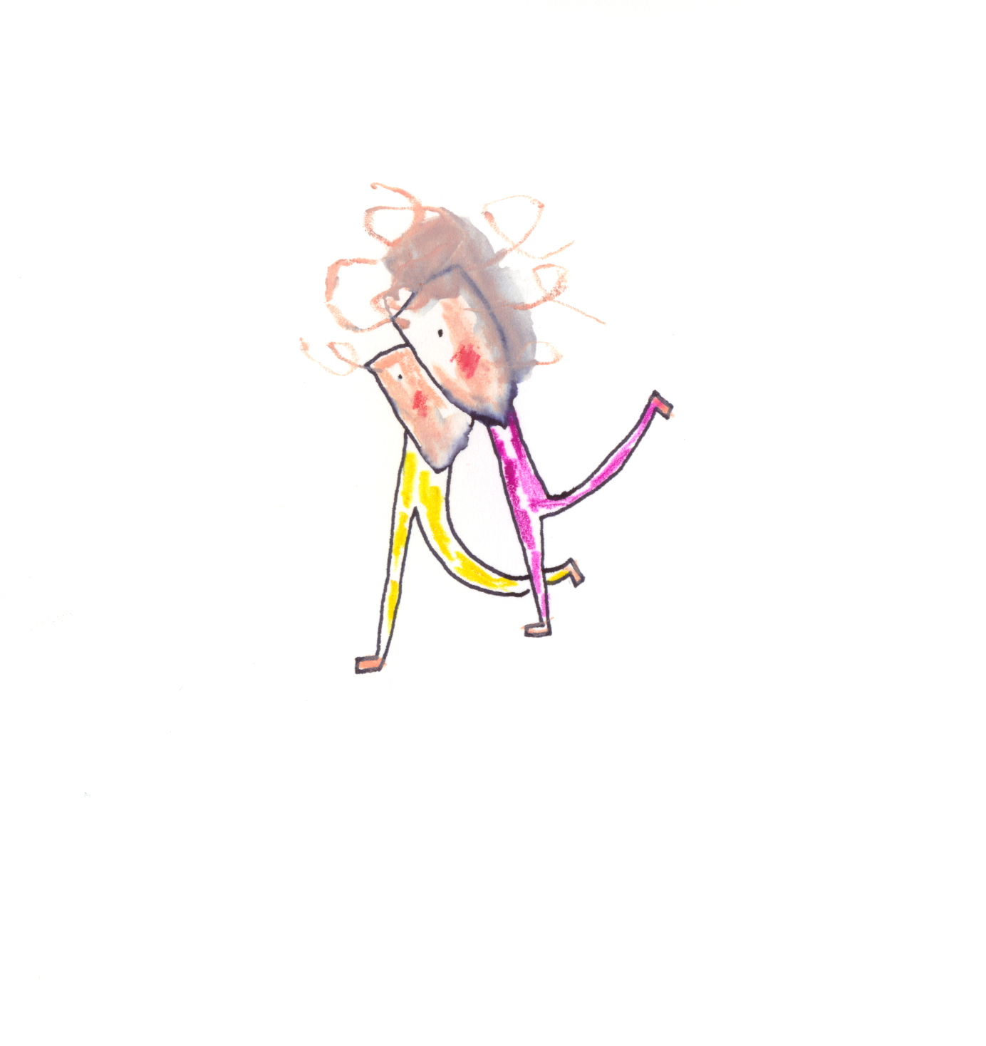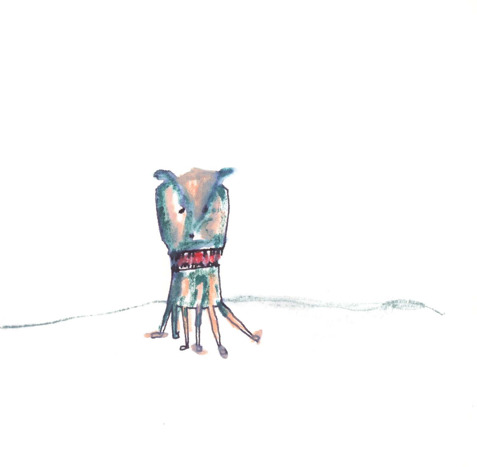 Pinturas a lápiz. Cuadernos que se llenan de imágenes e historias, de puertas, de vías de experimentación. A veces salen y toman un lienzo o se convierten en una camiseta o en un vinilo para el cristal de una mesa ... Personajes que viven en el blanco.